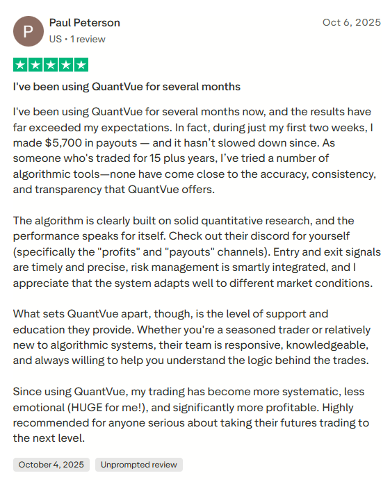 QuantVue is not responsible for trading losses. Past results are never indicative of future performance. Use QuantVue and trade at your own risk.